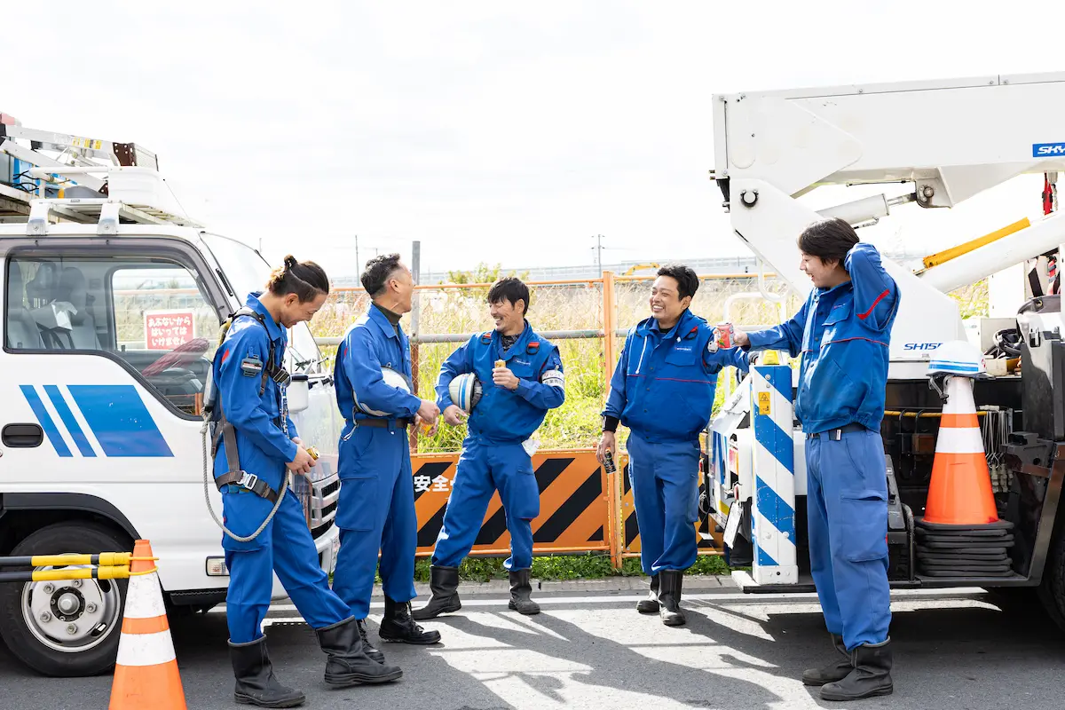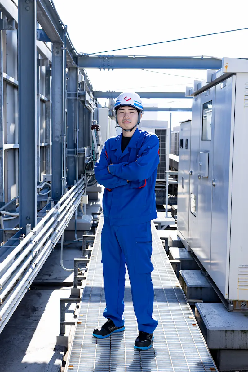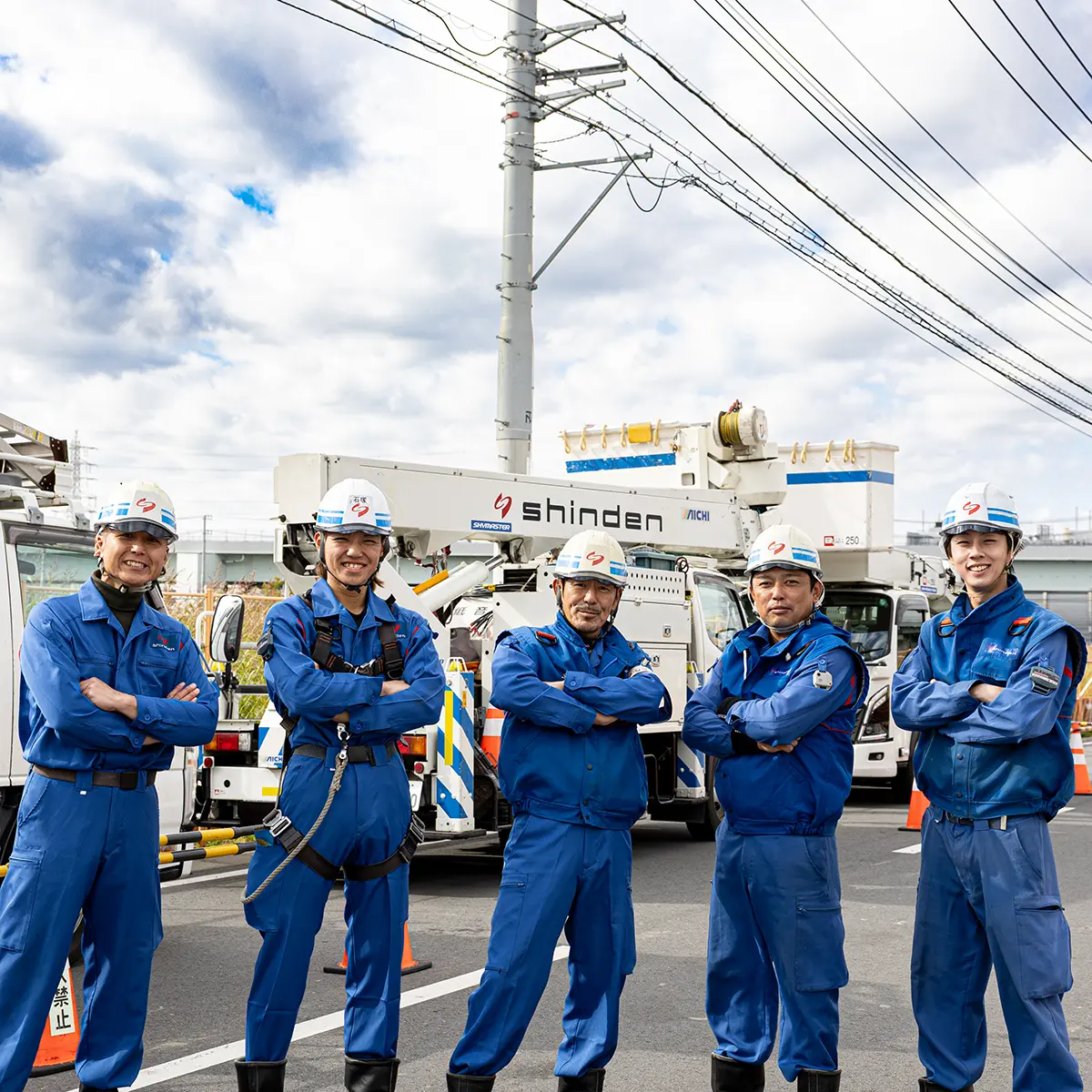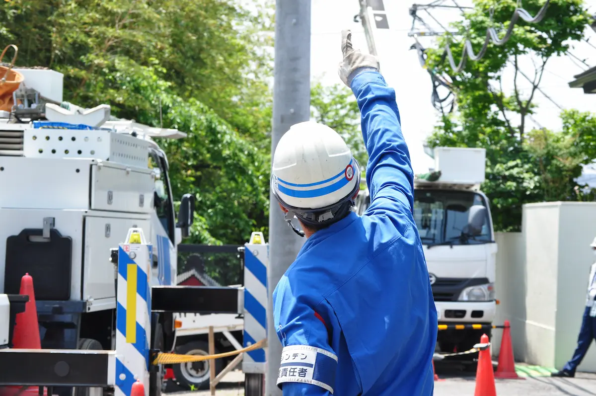 東京電力の配電設備をメンテナンスする仕事です。電線を張り替える、電柱上の設備を取り替えるなど、地域の電気設備を構築し守っています。