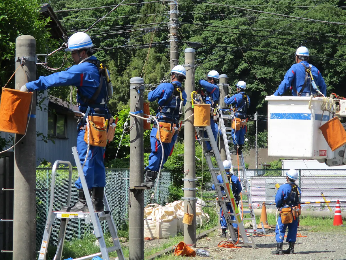 最初に電柱に登るときは不安かもしれませんが、指導員の指示に従えば安全に行えます!電柱の頂上から見える景色は最高です!​